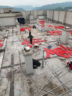 我公司设计制作安装的涪陵妇幼保健院楼顶大字工程圆满完工并已正式交付使用。该工程被列为我公司的重点工程项目之一,在施工过程中我公司秉承“安全第一,质量为本”的方针,以把该工程建成我公司的又一形象工程、优质工程为目标,严格按照设计方案、施工图纸以及施工规范完成该工程的一系列工作。我们的责任是要向建设单位负责,施工过程中和建设方有效沟通,听取建设方的意见和建议,专业团队精心设计、精准施工,该工程完工交付使用达到预期效果。