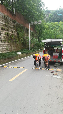 近期我司积极投入到万州道路交通规范建设当中,全力以赴高标准高质量地完成各项工作任务, 在乡村转弯处以及存在安全隐患的危险地段安装道路交通安全太阳能爆闪灯和减速带。